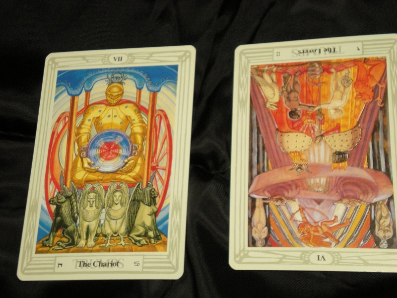戦車が持っている聖杯はアメジスト、赤は血の意味、恒星は回転していることによって、木星を表している。